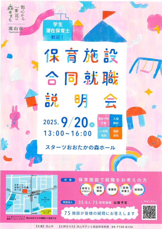 詳細は流山市HP保育施設合同就職説明会よりご確認ください。